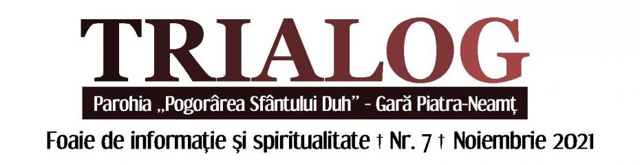 A fost publicat numărul 7/2021 al foii parohiale TRIALOG, un proiect catehetic al Parohiei „Pogorârea Sfântului Duh” - Gară Piatra-Neamţ, Protopopiatul Piatra-Neamț. (a se vedea fişierul ataşat).